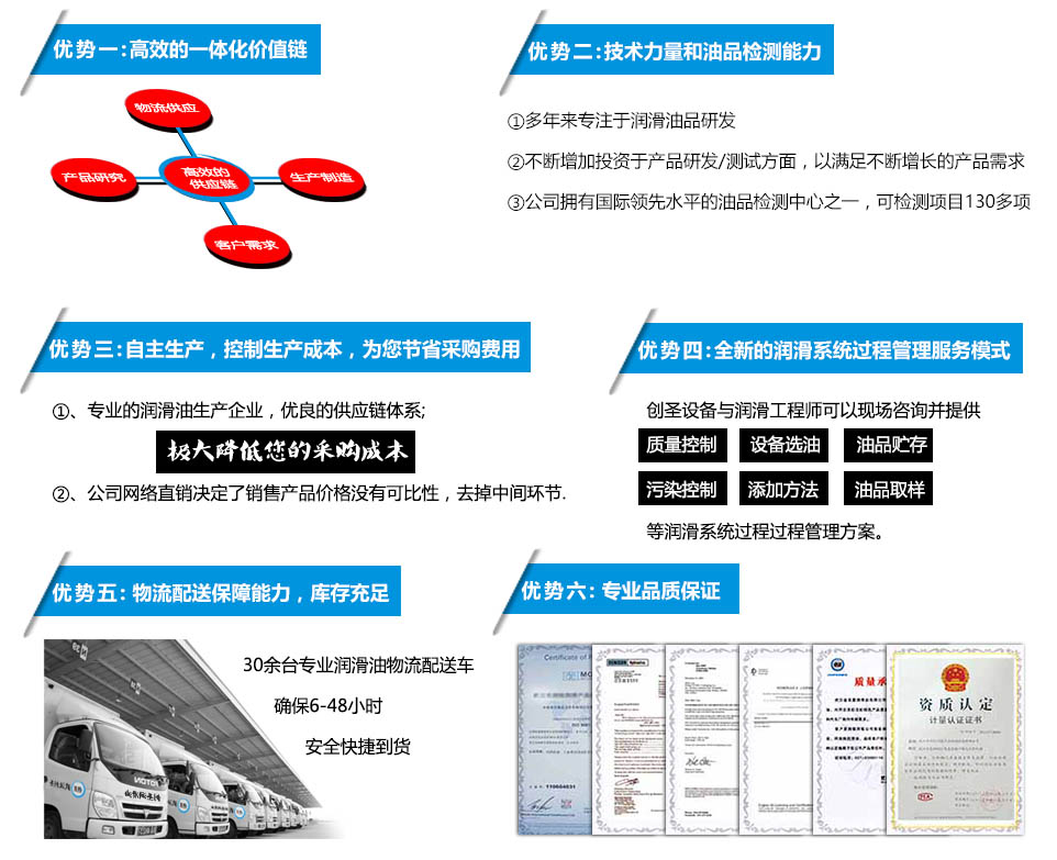 武漢金圣星潤滑油有限公司總部坐落于武漢臺商投資區。產品涵蓋液壓油、齒輪油、機械油、拉伸油、防銹油、導熱油、導軌油、汽缸油、冷凍機油、變壓器油、軸承油、空氣壓縮機油、內燃機油、蝸輪蝸桿油、淬火油、切削液、錠子油、皂化油、衣車油、紡織油、潤滑脂、航空煤油等數千種品項。先進的市場營銷策略,優(yōu)質的售后服務,加上勤勞的汗水,使公司不斷的成長壯大。創圣牌潤滑油為公司旗下知名品牌。創圣潤滑油各系列油品均精選高效復合添加劑和優(yōu)質基礎油,經過嚴格的生產工藝流程調制而成。